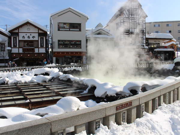 ホテル一井は湯畑の目の前に位置しており、湯畑周辺の散策も便利です。