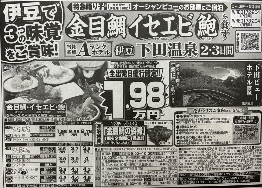 往復踊り子利用!金目鯛・イセエビ・鮑を食す伊豆下田温泉 [下田ビューホテル指定] 2・3日間