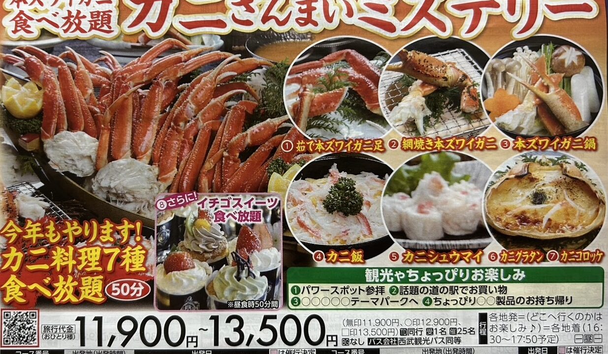 『焼きガニ・茹でガニ・カニ鍋など 7種カニ料理 本ズワイガニ食べ放題!カニざんまいミステリー』【南越谷 出発