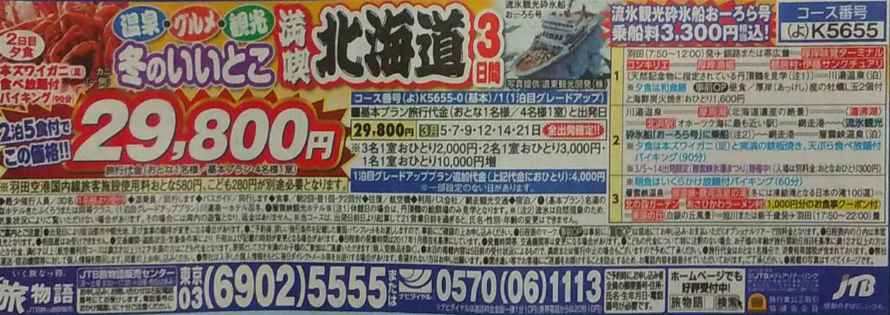 ■2017年2月10日 読売新聞夕刊広告欄掲載 ■旅行会社:国内旅行はJTB