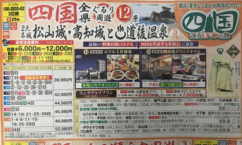 100-2830:【羽田空港発着】四国全県ぐるり周遊12景 四国2大名城「高知城」「松山城」 坂本龍馬ゆかりの「高知」、名湯「道後温泉」宿泊