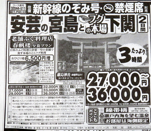 ・この価格は新聞掲載広告ならではの格安ツアーです。