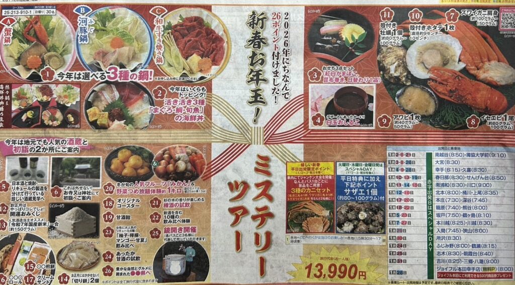 【埼玉県内発】 新春お年玉!ミステリーツアー