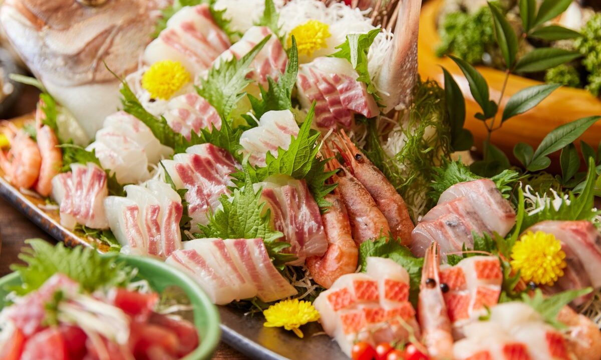 - 夕食は「サザエのつぼ焼き」や「金目鯛のにぎり寿司」など約60品のバイキング!アルコールも飲み放題!