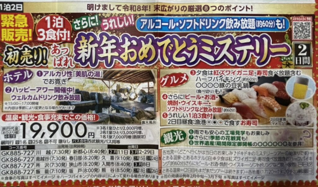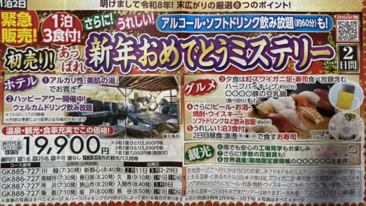 『明けまして令和8年!新春初売り!あっぱれ新年おめでとうミステリー 2日間』【南越谷・春日部・久喜 出発】