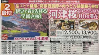 南越谷(7:30発)–春日部(8:20発)–久喜(9:10発)–<どこへ行くかは当日のお楽しみ♪ドキドキのミステリツアー>–とある温泉・とあるホテル(泊)【15:30頃予定】※夕食は紅ズワイガニ足・寿司食べ放題含むハーフバイキング(約60分)さらにアルコール飲み放題!(約60分)