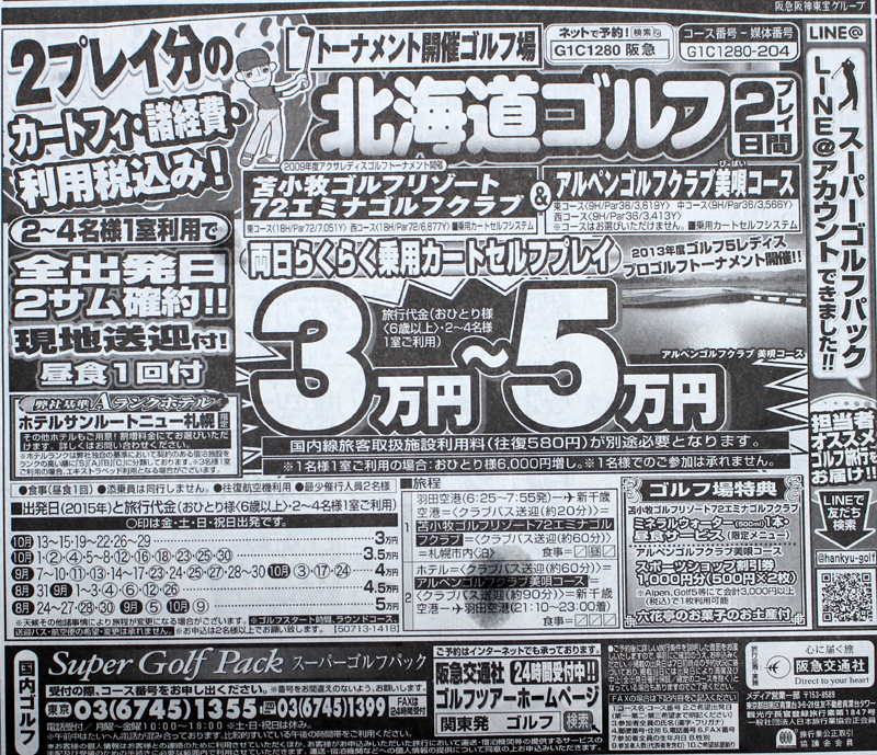 ・新聞広告ならではの激安ツアーです。夫婦そろってのゴルフ旅行や友達とのゴルフ旅行などにおすすめです。