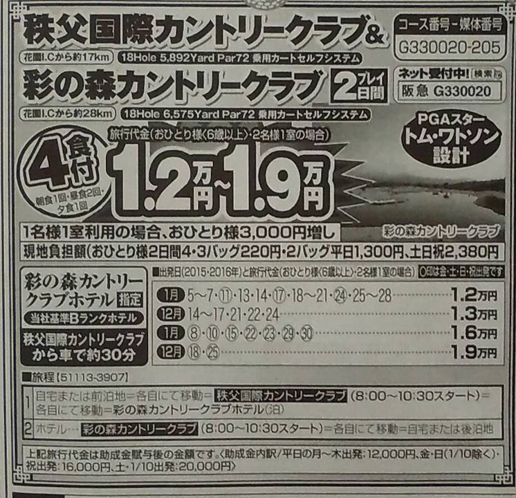 G330020:【マイカープラン】埼玉県よりお一人様12,000~20,000円の助成を頂いて実現 秩父国際CC&彩の森CC2日間