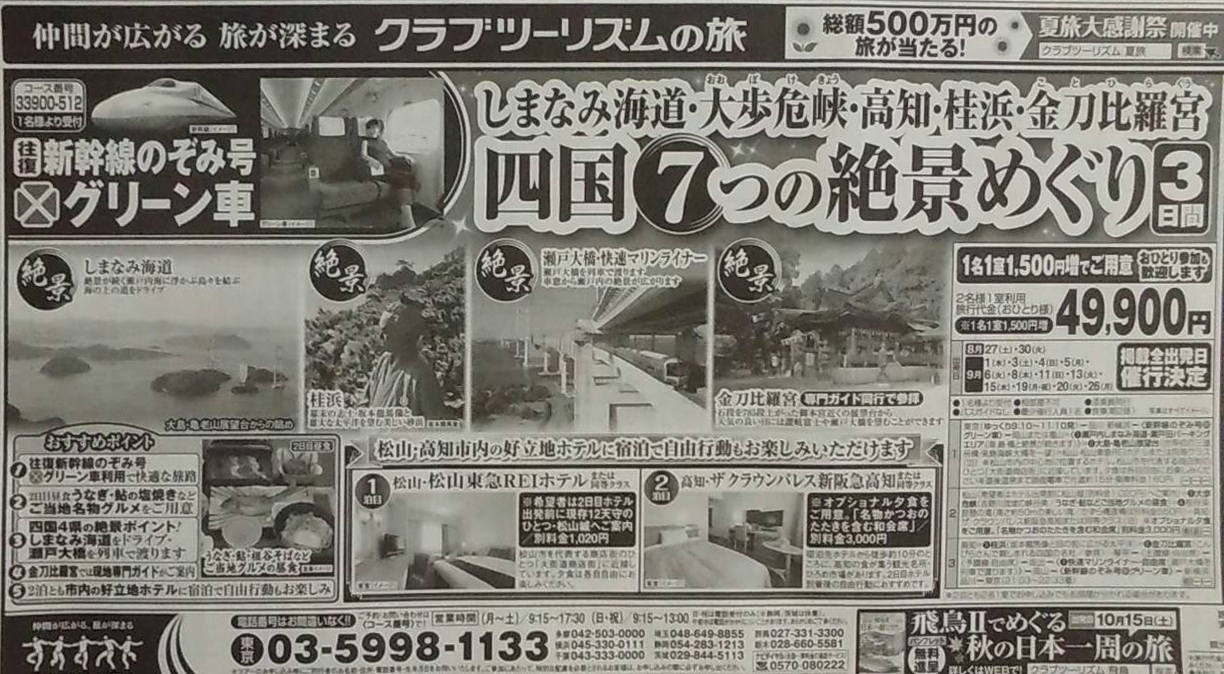 ■2016年8月13日 読売新聞朝刊広告欄掲載 ■旅行会社:クラブツーリズム