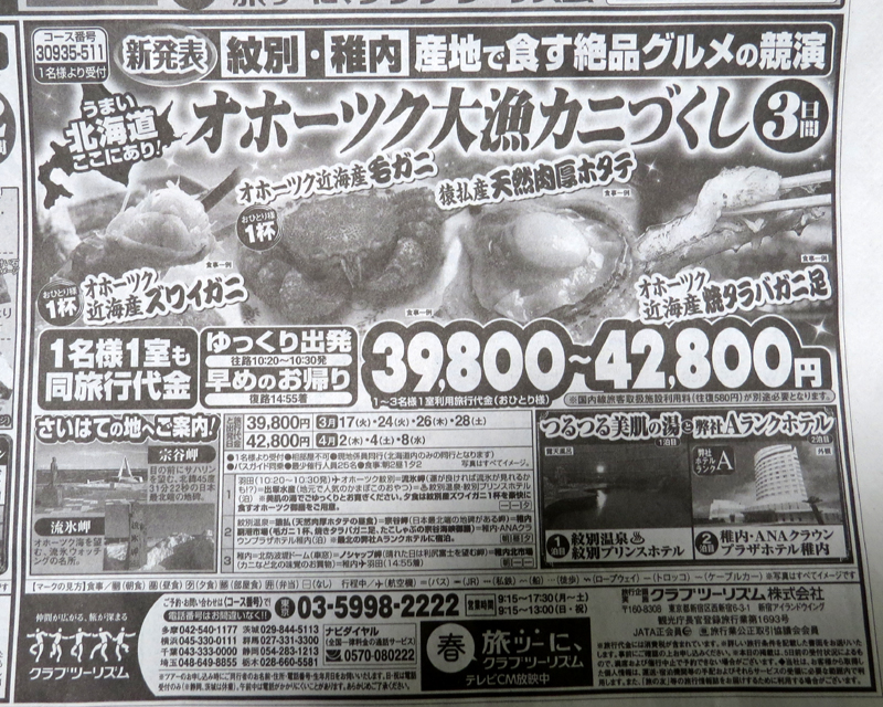 ・新聞掲載広告ならではの激安ツアー。春休み出発あるので孫を連れての三世代家族旅行や、卒業旅行にピッタリです。もちろんグルメ旅にも!