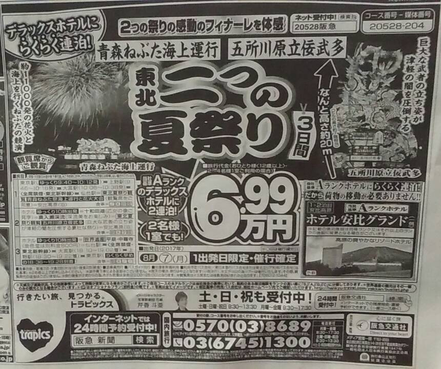 ■2017年6月14日読売新聞朝刊広告欄掲載 ■旅行会社:◆ネットで24時間簡単予約!◆ホテルなら阪急交通社へお任せ!