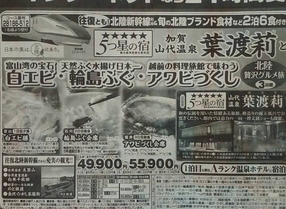 28186-512:『往復とも!北陸新幹線利用&旬の北陸ブランド食材など2泊6食付き!加賀 山代温泉 葉渡莉と北陸夏の贅沢グルメ旅 3日間