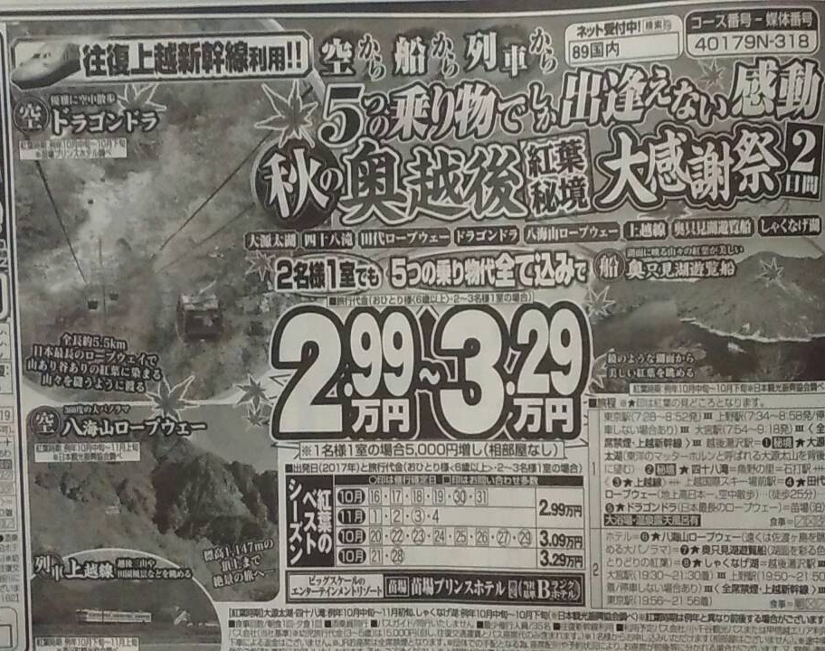 ・新聞掲載広告から厳選した格安ツアーです。秋の紅葉のベストシーズンに三世代家族旅行などにおすすめです。