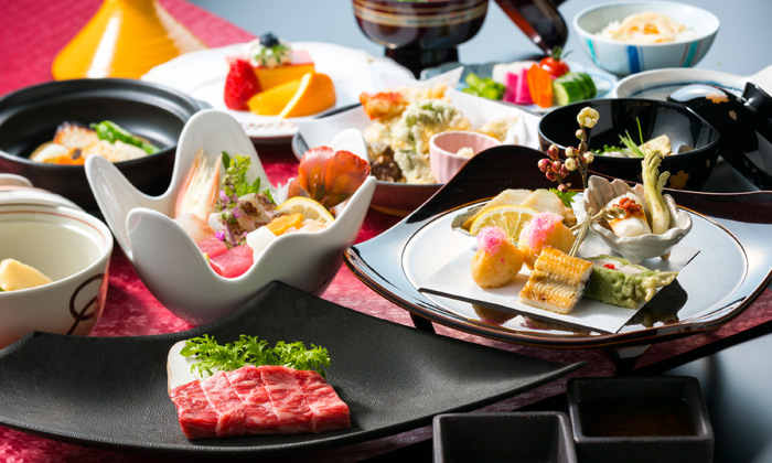 目で肌でお料理で四季を感じていただけるよう、旬の食材をふんだんに盛り込み、調理長こだわりのお料理を提供させていただきます。露天風呂付き客室にふさわしい当館最高級の特別会席コースをご提供させていただきます。