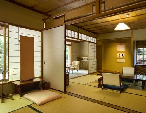 - 昭和4年に旧三菱財閥創始者の長男・岩崎久彌氏の別邸として建てられた数奇屋造りの和風建築邸。