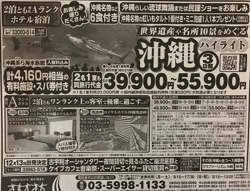 ・この内容でこの価格は、新聞掲載広告ならではの格安ツアー。卒業旅行や女子会や家族旅行などにおすすめです。