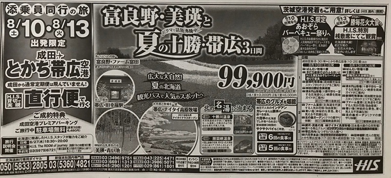■2019年6月9日 読売新聞朝刊広告欄掲載 ■旅行会社:H.I.S.国内旅行